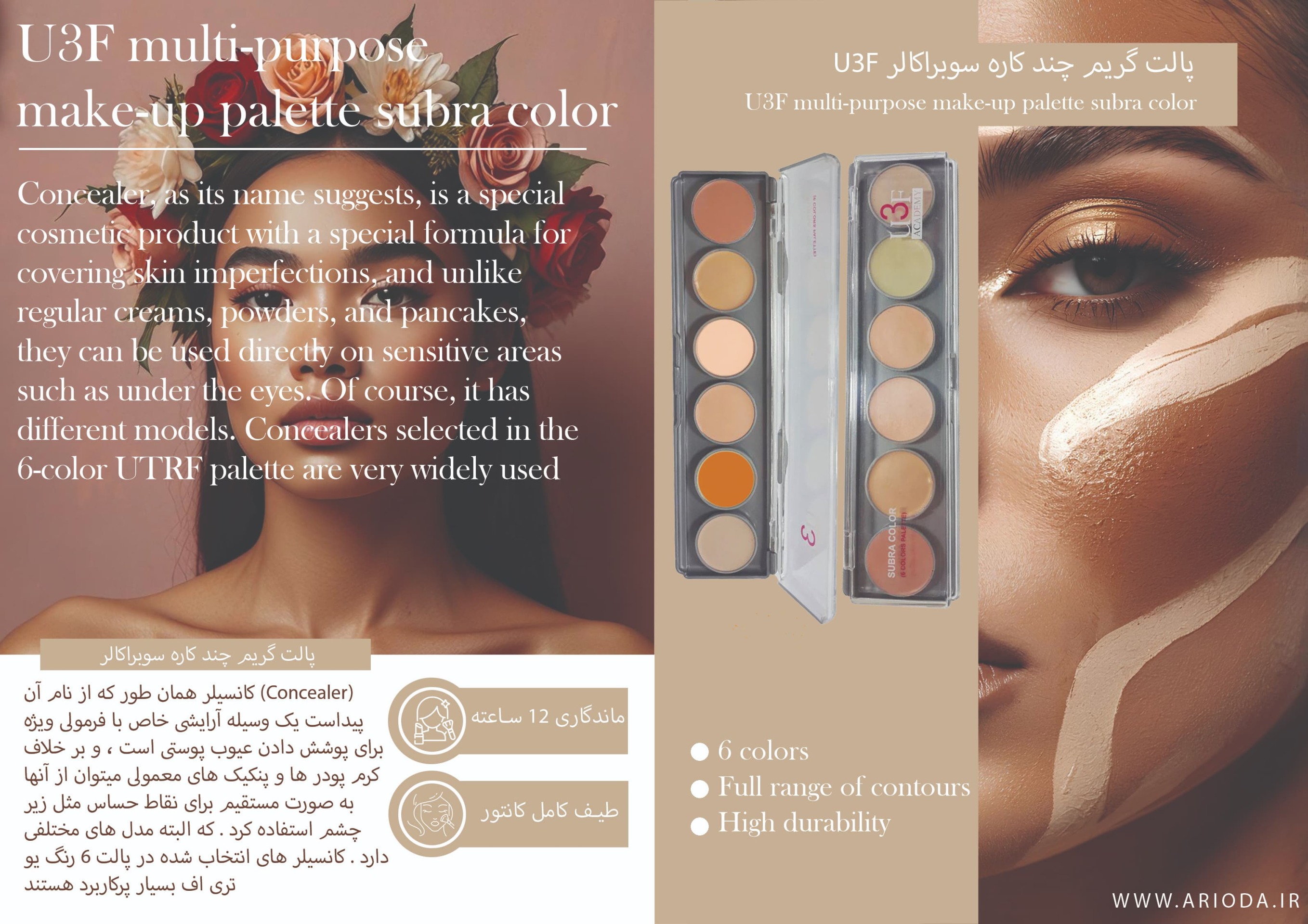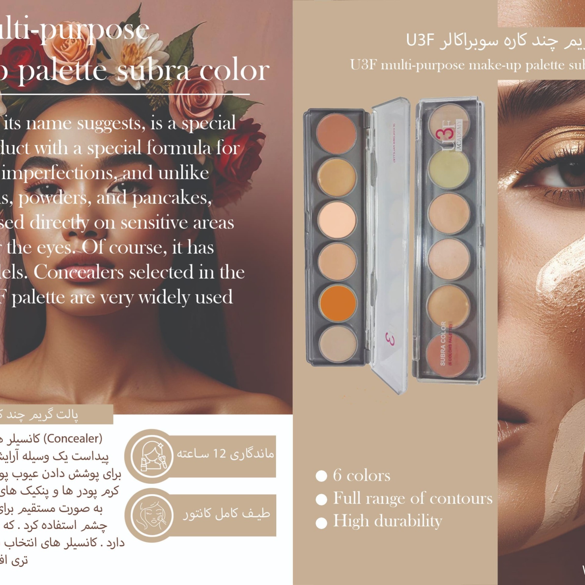 پالت گریم چند کاره سوبراکالر U3F 6 رنگ – انتخابی حرفهای برای گریم و کانتورینگ