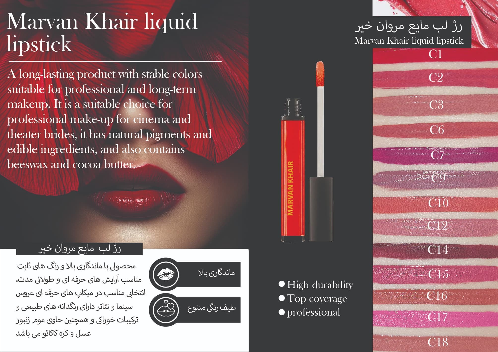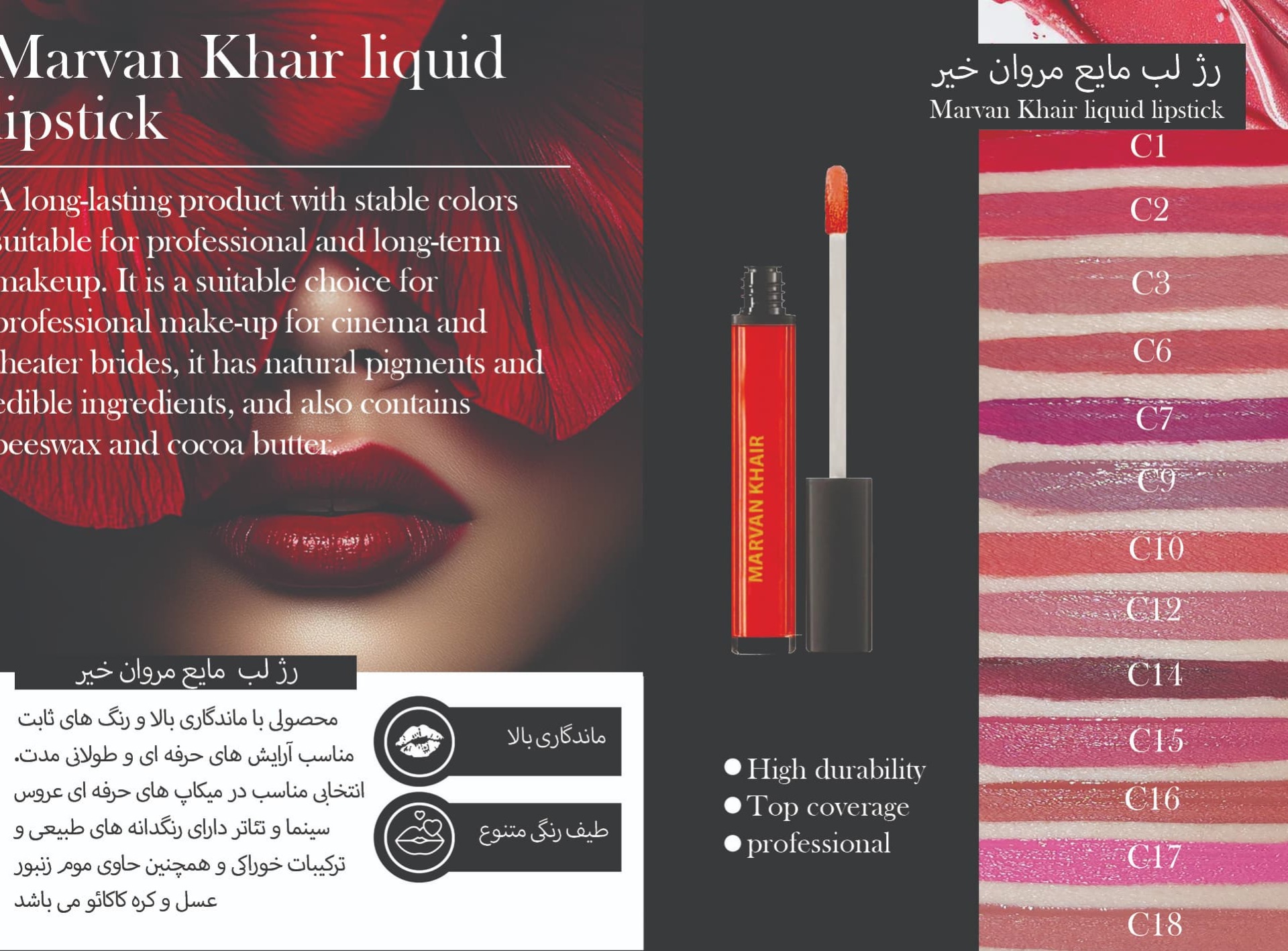رژ لب مروان خیر، همراه مطمئن شما برای آرایشهایی با دوام، ظرافت و حرفهایگری.